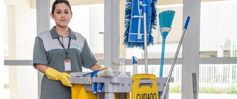 Placas de piso, carro funcional, baldes, mops, rodos, coletoras.