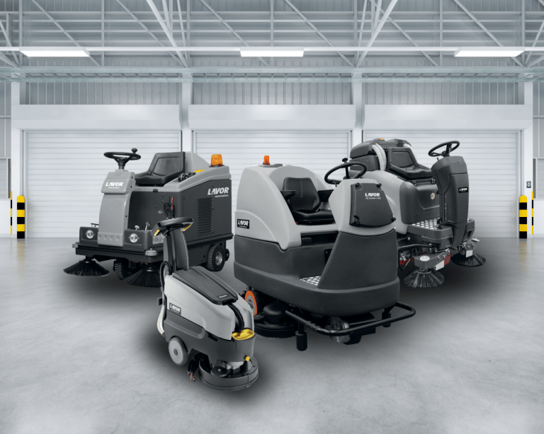 Lavadoras e secadoras de piso, enceradeiras, polidoras, aspiradores, extratoras.